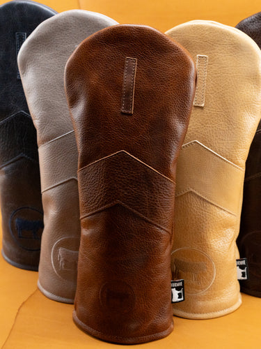 Each headcover is made from full-grain Italian leather with a natural pebble texture that looks sharp and gets better with age. Inside, a soft plaid liner cushions your club like it belongs there.