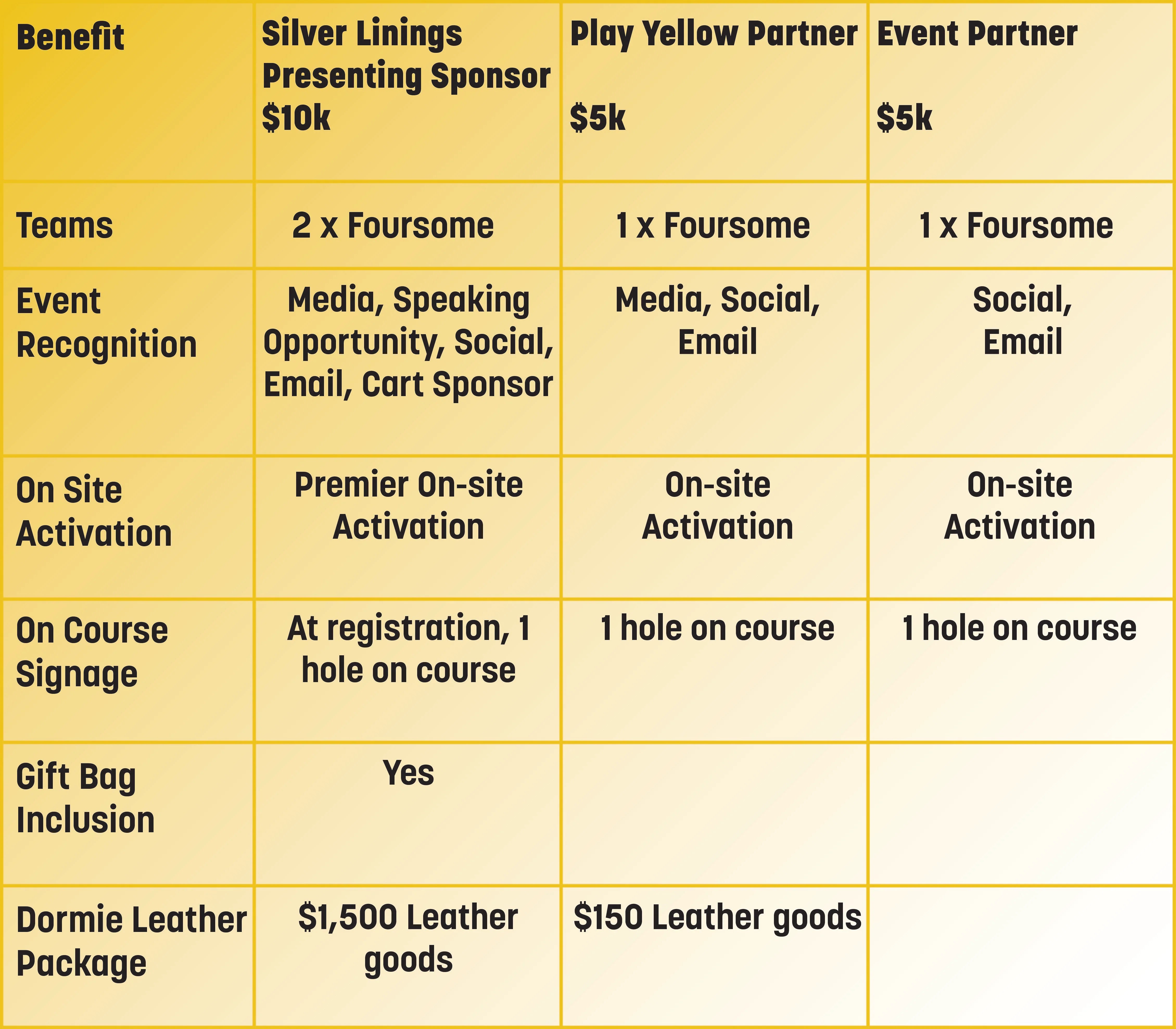 We couldn’t do any of this without our incredible sponsors. Thank you to the following sponsors who have stepped up and made this event possible for our 5th Annual Dormie Workshop Play Yellow golf tournament in support of the IWK