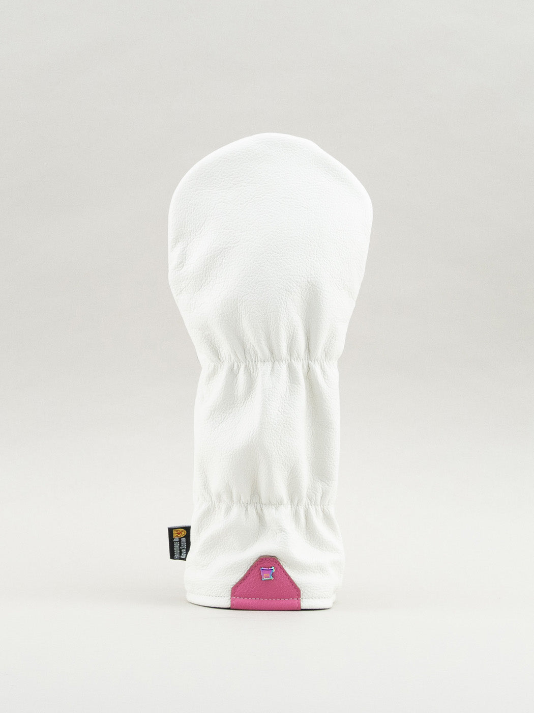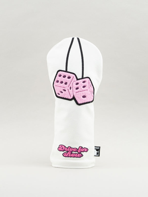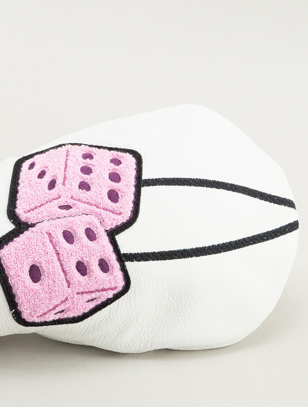 Lighten up your bag and still keep all the heat. The Lucky Pink Dice Driver White is a handcrafted golf headcover made for the player who knows golf is a gamble and loves every minute of it. With bright pink chenille dice popping off crisp white Italian leather, this premium golf accessory is all about taking chances and turning heads. Perfect for friendly wagers or your next big skins game.